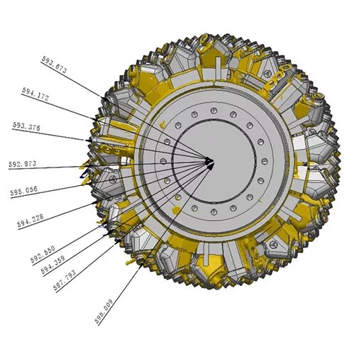 04 分析銑刨鼓各刀頭裝配孔位中心軸線與筒身端面的偏差角度
