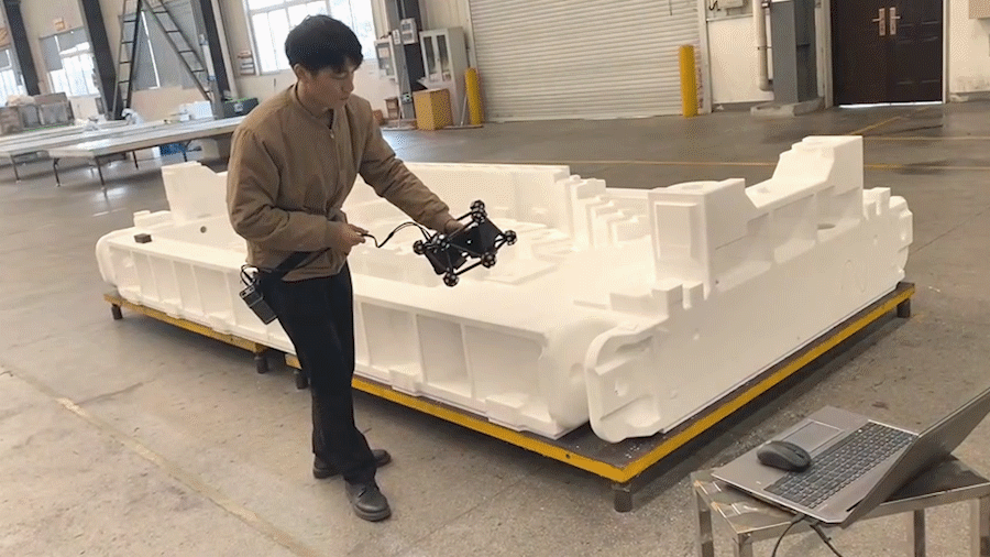 無線模塊FreeBox-S和FreeBox-T 分別搭配球掃和跟蹤器,配對使用,擺脫了傳統數據線的束縛,在掃描此類大工件時其靈活、自由、便攜的優勢突出,能幫助客戶更加快速地完成三維掃描和建模工作。